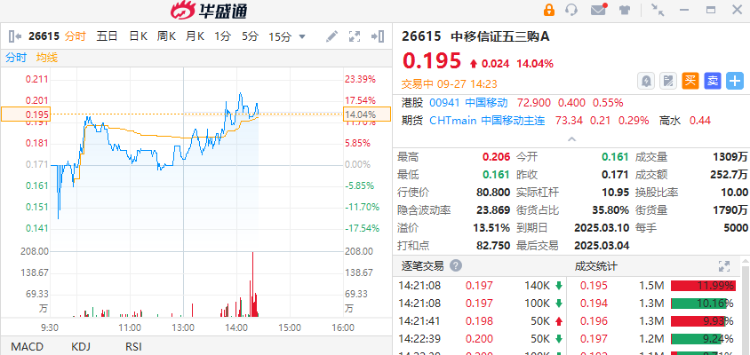 其他中资电讯股亦同样跑输大市,部署中移动( 0941 )的话,好仓可以留意中移动认购证 $26615.HK ,行使价80.8港元,明年3月到期,实际槓杆约11倍;淡仓选择可以留意中移动认沽证 $26311.HK ,行使价70港元,明年1月中到期,实际槓杆约13倍。