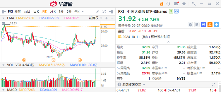 中国资产近期连续暴涨,上证指数本周涨12.8%,恒生指数涨13%,恒生科技指数涨20%!中国大盘股ETF $FXI 涨超17%。
