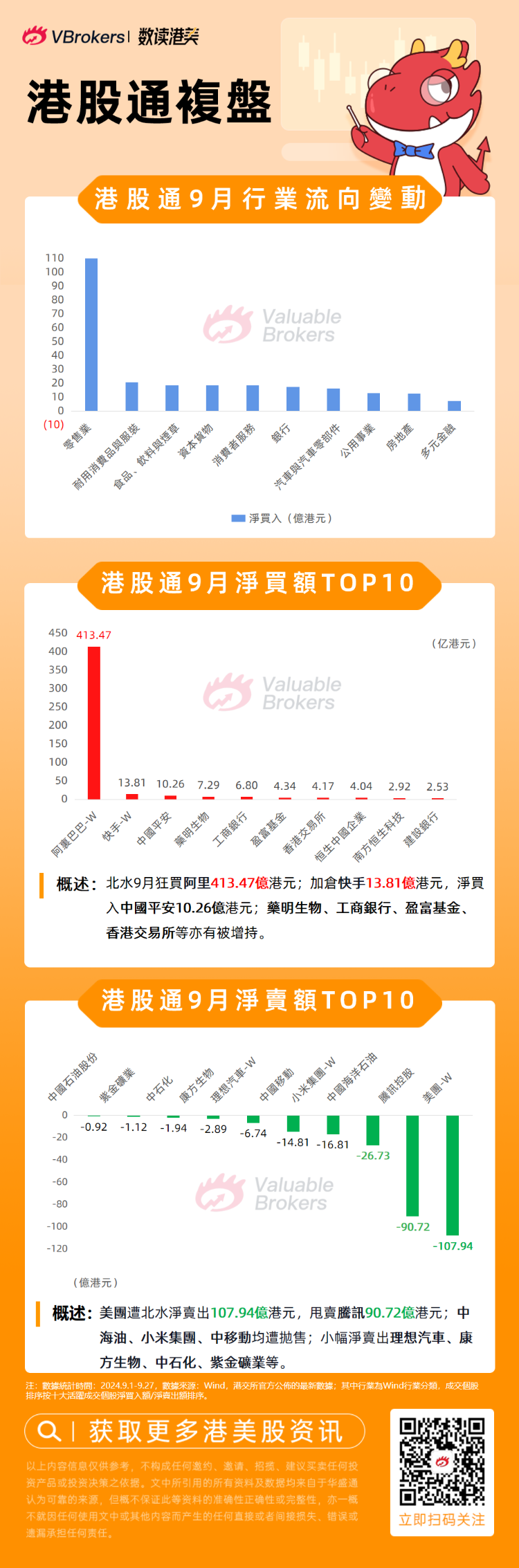 北水9月狂买阿里超413亿港元!科网股、高息股为资金动向重点
