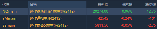 美股三大股指期货盘前涨跌不一,截至发稿,纳指期货 $NQmain 涨0.06%,标普500指数期货 $ESmain 跌0.05%,道指期货 $YMmain 跌0.24%