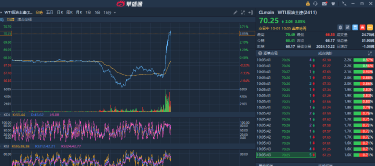 华盛资讯10月1日讯,WTI原油日内直线拉升,涨幅迅速扩大至3%以上。