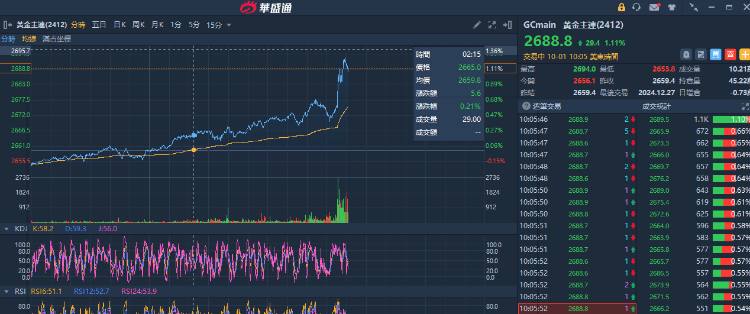 同时,现货黄金突破2670美元/盎司,日内涨1.33%;现货白银日内涨超2%,现报31.77美元/盎司。