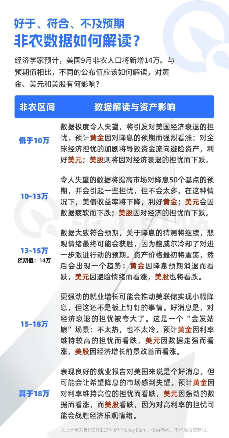 與預期值相比,不同的非農公佈值應該如何解讀,對黃金、美元和美股有何影響?