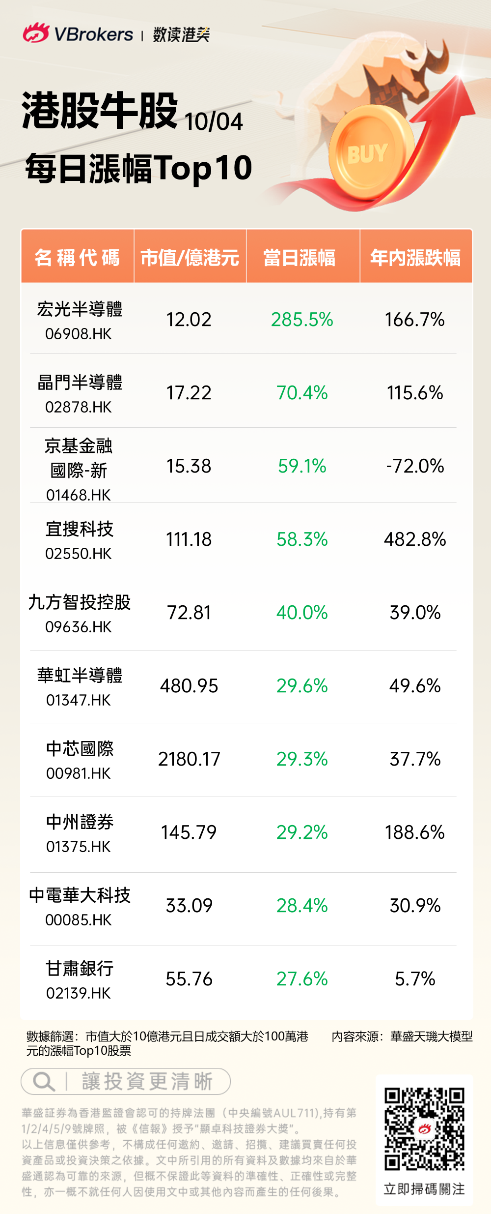 發仔统计了每日港股涨幅Top10,具体名单如下: