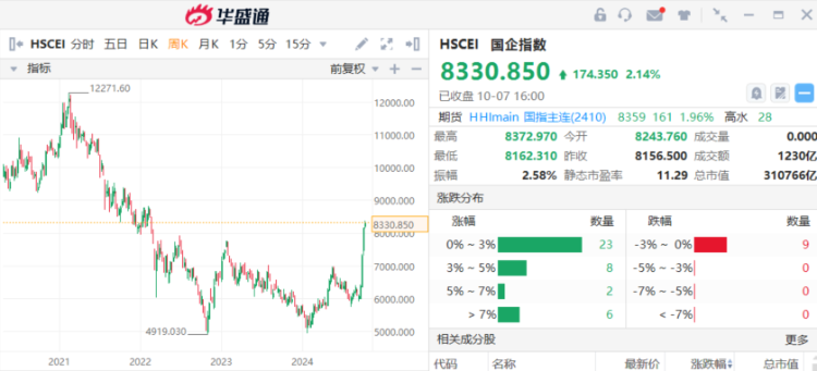 自那天起,港股国企指数从6400点附近飙升至目前8156点,一些成分股出现了天文数字般的涨幅。在引发一波买盘的同时,贝莱德在内的多家金融机构也对中国资产转而看涨。