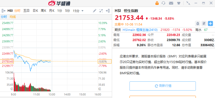 值得注意的是,国庆假期间开启史诗级狂飙的港股,今日行情急转直下。