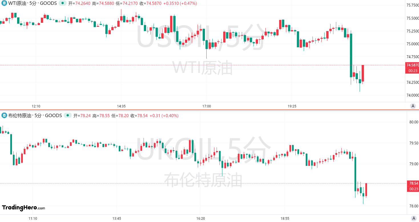 然而,周二油价在美盘前大幅下挫,均跌超3%,WTI原油跌至74美元附近,布伦特原油跌至78美元附近。