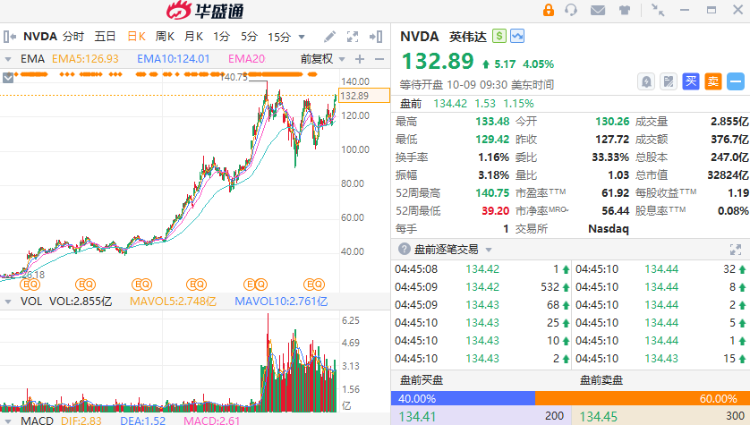 在经历一波“五连涨”后,英伟达的股价在不经意间又攀升到了历史高点附近。截至周二美股收盘,英伟达涨4.05%,报132.89美元,距离此前6月创下的峰值135.58美元只差“临门一脚”了。
