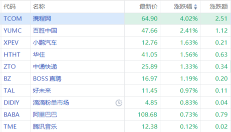 华盛资讯10月10日消息,美股中概股今日涨跌不一,截至发稿,携程网涨超4%,小鹏汽车、Boss直聘涨超1%,阿里巴巴小幅上涨。