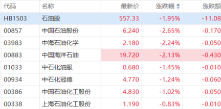 石油股集体走低,截至发稿,中石油、中海油跌超2%,中石化跌超1%。