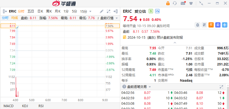 爱立信盘前涨超7%,Q3调整后息税前盈利同比大增88%。爱立信首席执行官Borje Ekholm预计,第四季网络销售将按年表现稳定,主要是受到北美市场所推动。