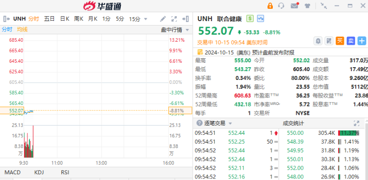 联合健康绩后跌近9%, 2025年调整后每股收益指引上限低于预期。