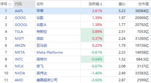 华盛资讯10月15日消息,美股早盘,明星科技股走势分化,截至发稿,苹果涨超2%创下盘中历史新高,谷歌涨超1%,特斯拉、微软、亚马逊跟涨;美国超微公司跌近3%,英伟达跌超1%,奈飞跌近1%。