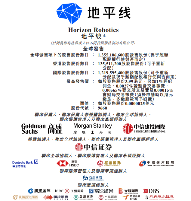 华盛资讯10月16日消息,智驾科技头部企业地平线 $09660.HK 今起招股,一手入场费2418.14港元。前往新股中心,申购新股>>