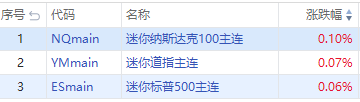 三大期指周三盘前小幅上扬,截至发稿,纳指期货 $NQmain 涨0.10%,标普500指数期货 $ESmain 涨0.06%,道指期货 $YMmain 涨0.07%。