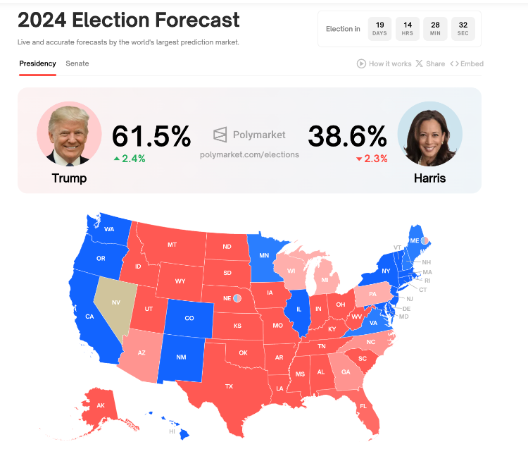 十倍金价不是梦?引子随着美国大选的临近,市场仿佛正在提前定价特朗普当选的情景,因为现在“真实的民调和情景”,正在指向特朗普胜选。