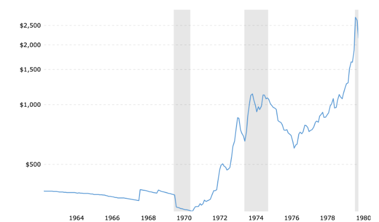 这一点跟70年代有很多相像之处:当时美元与黄金脱钩,布雷顿森林体系崩溃;再叠加高通胀和地缘的剧烈动荡,美元的信用在全球受到了严重质疑。结果就是美元计价的黄金飙涨了近十倍!