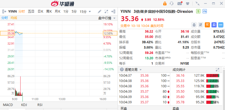ETF方面,3倍做多富时中国50指数-Direxion $YINN 涨近13%,2倍做多沪深中国互联网指数ETF-Direxion $CWEB 涨超9%。