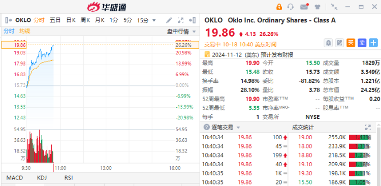 Sam Altman投资的小型核电公司Oklo $OKLO 股价创盘中历史新高,上涨逾26%,最高触及19.98美元。