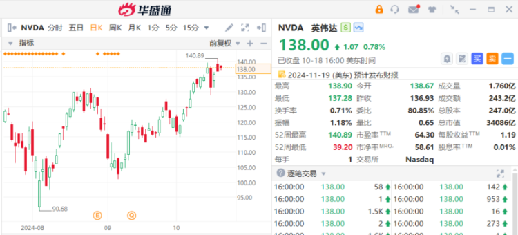 市场层面,英伟达股价持续狂飙,本周再度创历史新高,年内累计涨幅已高达186.5%,最新总市值已攀升至3.39万亿美元(约合人民币24万亿元)。