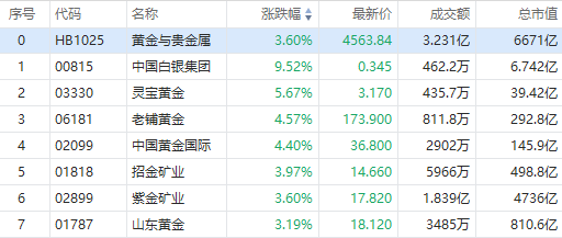 华盛资讯10月21日消息,港股早盘,黄金板块集体飙涨,截至发稿,中国白银集团涨超9%、灵宝黄金涨超5%,老铺黄金、中国黄金国际涨超4%,山东黄金、紫金矿业涨超3%。