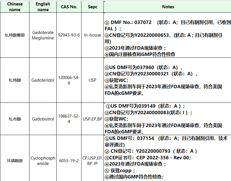 钆造影剂生产线车间已通过美国FDA现场检查,符合美国FDA的cGMP要求。