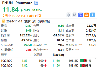 华盛资讯10月22日消息,特朗普概念股继续走高,Phunware $PHUN 涨超40%, 特朗普媒体科技集团 $DJT 涨超5%。美国大选结果出炉仅剩两周,“特朗普交易”日趋升温。