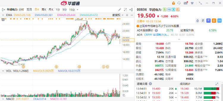 华润电力(0836.HK)盘初一度跌超11%至18.42港元,截至发稿跌6%。公司公布配售事项和认购事项,预计集资净额71.97亿港元,拟用于增加现金储备,以供营运及一般企业用途,以及偿还财务负债。
