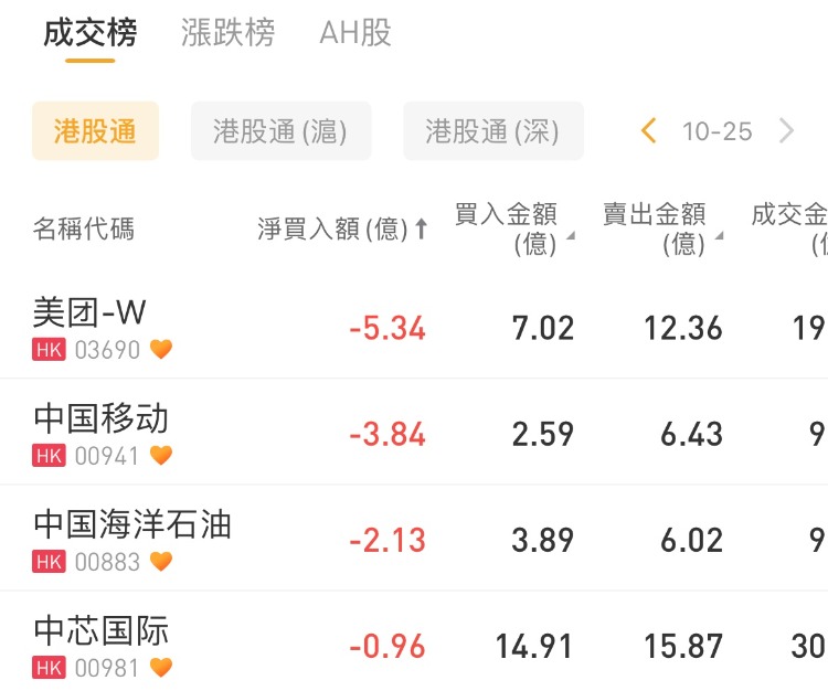 南向资金加仓阿里巴巴-W,净卖出美团-W
