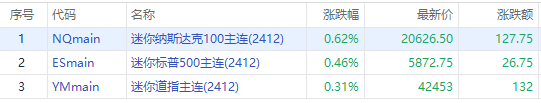 周一盘前,美股三大股指期货走高,标普500指数期货 $ESmain 涨0.46%,纳指期货 $NQmain 涨0.62%,道指期货 $YMmain 涨0.31%。