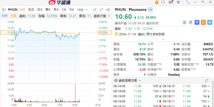 特朗普概念股大涨,Phunware $PHUN 一度涨15%, 特朗普媒体科技集团 $DJT 涨超7%,美国大选即将在下周二(11月5日)正式开始。