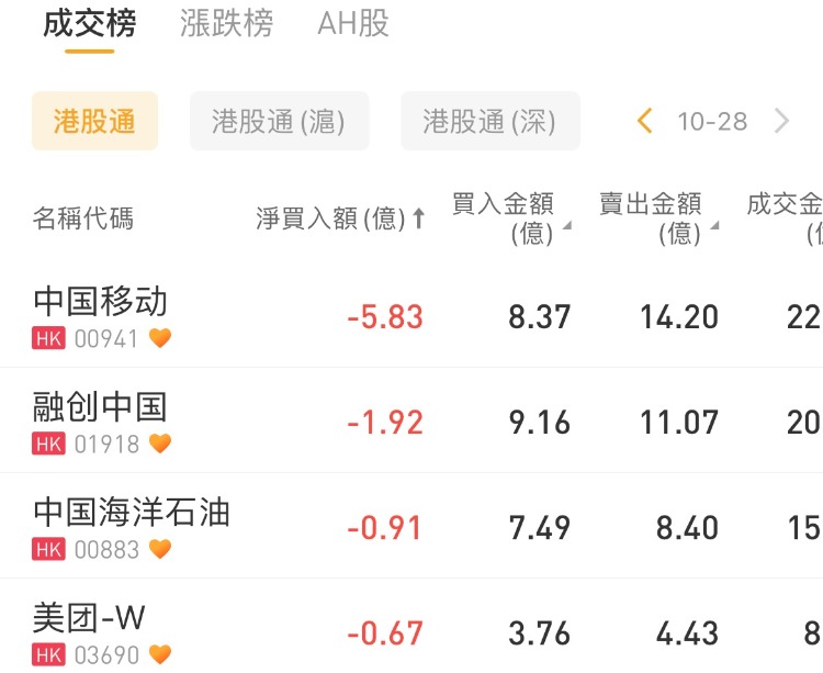 南向资金加仓阿里巴巴-W,净卖出中国移动