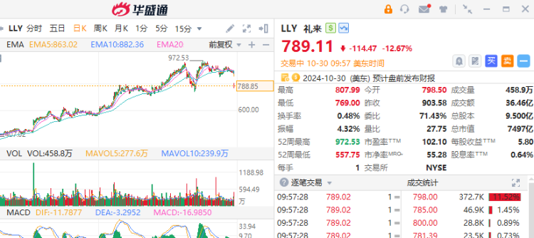 截止发稿,礼来股价跌超11%。值得注意的是,肥胖症的巨大潜在市场让礼来公司的股价持续飙升,今年以来,该公司的股价已累积上涨逾55%。