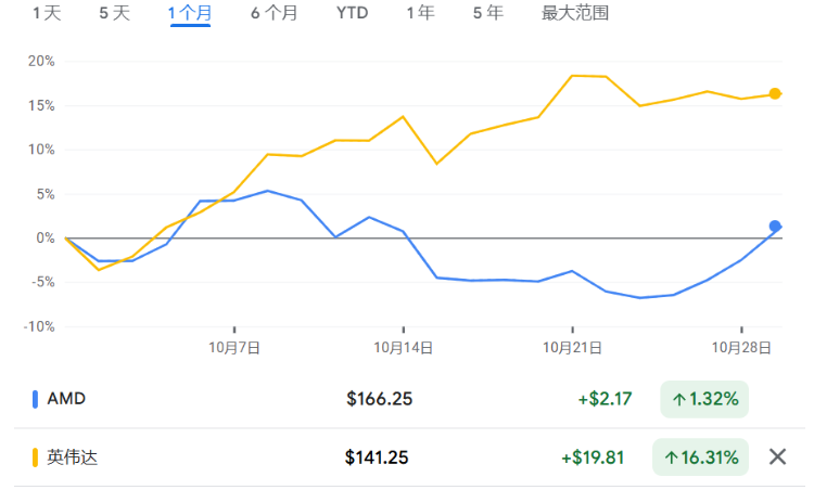 下半年来从股价走势看,AMD基本同英伟达一致,转折点出现在10月10日,AMD推出新款MI325XAl加速器。
