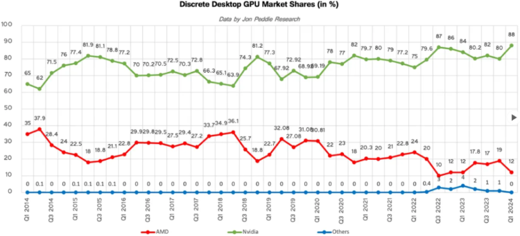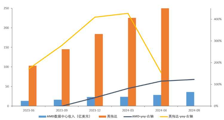 AMD被认为是目前最有可能挑战英伟达在A芯片垄断地位的追赶者,特别是在英伟达让了一手,因设计缺陷推迟Blackwell系列生产的情况下,市场期待AMD能够奋起直追,从英伟达手中抢到更多份额。