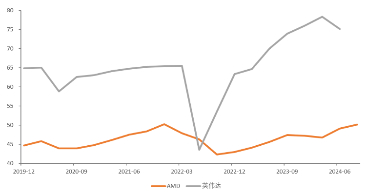 图:毛利率对比:AMDVS英伟达