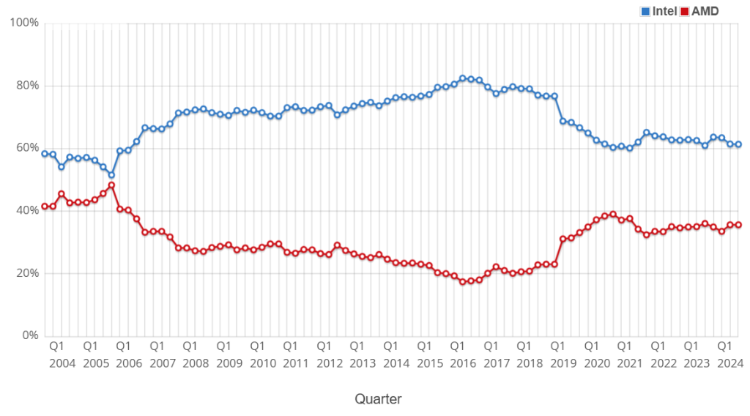 图:CPU市场份额:英特尔VS AMD