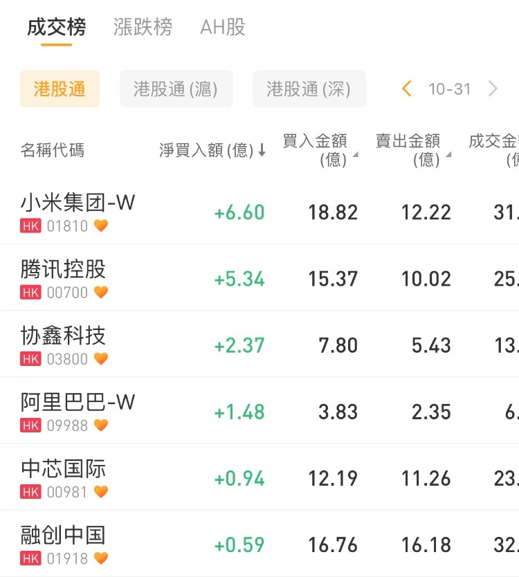 小米集团-W、腾讯控股、协鑫科技分别获南下资金净买入6.6亿港元、5.34亿港元、2.37亿港元;