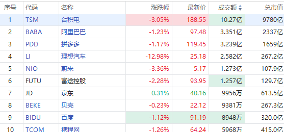 华盛资讯10月31日消息,热门中概股早盘走低,理想汽车绩后重挫13%,阿里巴巴、拼多多、百度均跌超1%。