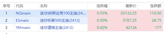 美国10月季调后非农就业人口1.2万人低于预期,10月失业率 4.1%符合预期,三大股指期货盘前直线拉升,标普500指数期货 $ESmain 现涨0.50%,纳指期货 $NQmain 涨0.55%,道指期货 $YMmain 涨0.42%。
