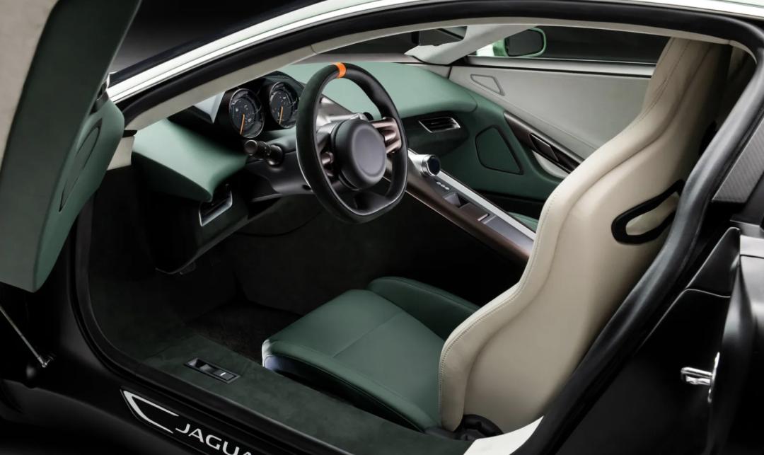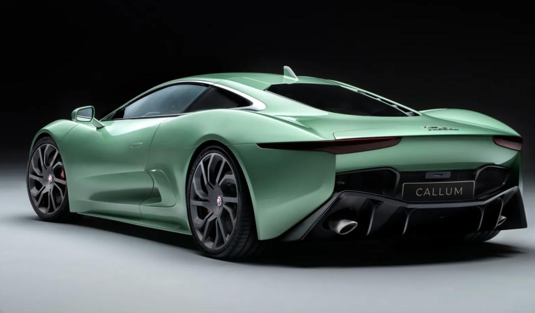 CALLUM团队对这款C-X75的车身进行了超过1000小时的精心打造,车身采用了名为“Willow”的绿色涂装,搭配刷砂铝制车窗饰条、碳纤维装饰和抛光金属格栅,使其外观更加独特。车内,原先的特技车辆内饰被一个绿色和奶油色的“高端环境”所取代,提供了一个真正的豪华驾驶环境。定制的Bridge of Weir皮革座椅、实心锻造方向盘、数字后视镜、旋转控制器、CarPlay以及出色的音响系统,都是这款C-X75的标准配置,甚至还有杯架。