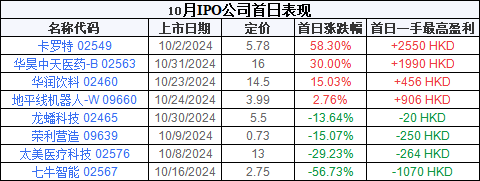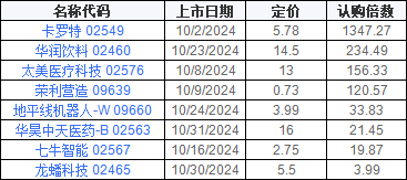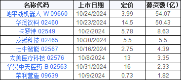 同时,随着刺激政策的加码,市场活跃度高涨,港股IPO的热度也开始回升。进入10月份,共有8家企业成功登陆港交所主板,涵盖医疗科技、智能设备、食品饮料等多个领域。特别是华润饮料和卡罗特两家公司,因各自冻结资金超过千亿元而引起市场广泛关注,也凸显了港股IPO市场持续回暖的迹象。