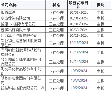 10月递表一览