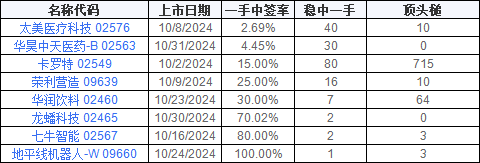 从配售结果显示,稳中一手卡罗特需要认购80手,不过一手中签率有15%。太美医疗科技一手中签率则低于2.69%,成为10月最难中签票。