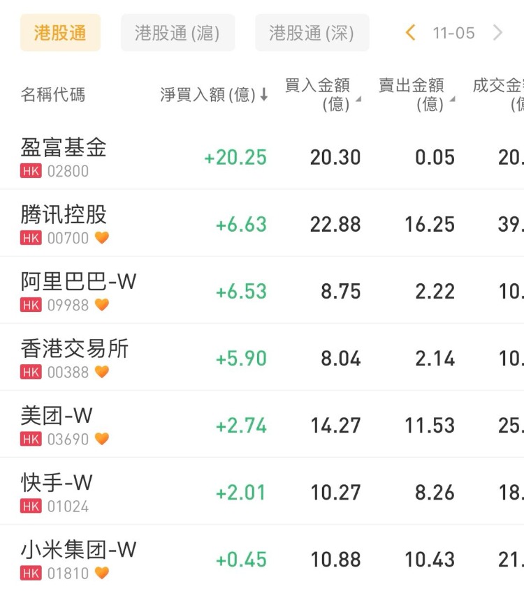 盈富基金、腾讯控股、阿里巴巴-W分别获南下资金净买入20.25亿港元、6.63亿港元、6.53亿港元;
