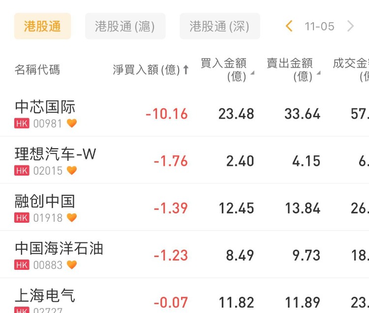 中芯国际、理想汽车-W、融创中国分别遭净卖出10.16亿港元、1.76亿港元、1.39亿港元。