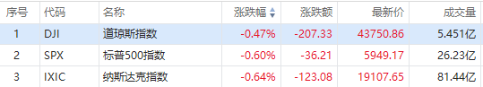 美股三大股指周三集体下挫,道指跌0.47%,纳指跌0.64%,标普500指数跌0.60%;新能源汽车股重挫,Rivian大跌14.3%,特斯拉跌5.77%;迪士尼绩后大涨6%,苹果涨1.38%。
