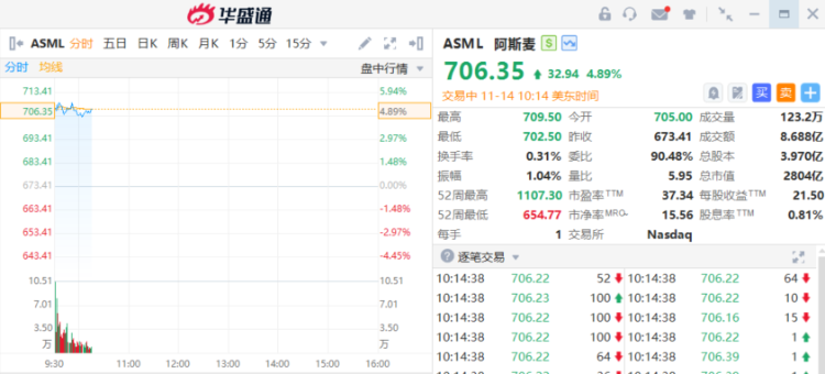 美股异动 | AI需求依然强劲!阿斯麦升近5%,预计未来五年销售增长率平均为8%-14%