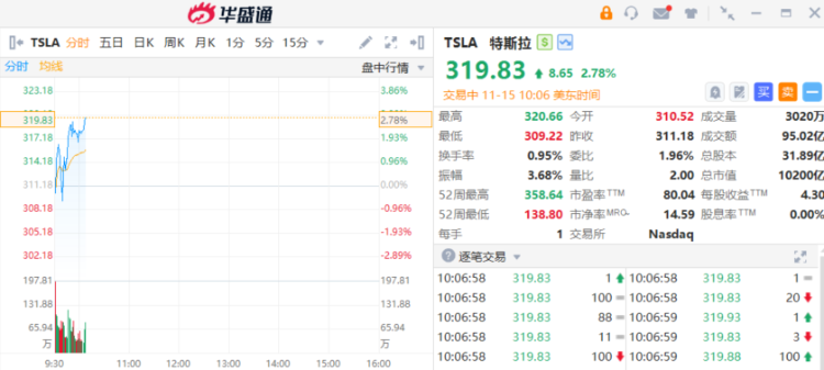 华盛资讯11月15日消息, 美股早盘走弱,道指跌0.61%,标普500指数跌0.90%,纳指跌1.43%。