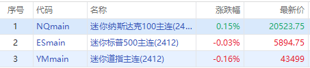 华盛资讯11月18日消息,美股三大股指期货盘前集体走低,标普500指数期货 $ESmain 跌0.03%,纳指期货 $NQmain 涨0.09%,道指期货 $YMmain 跌0.16%。